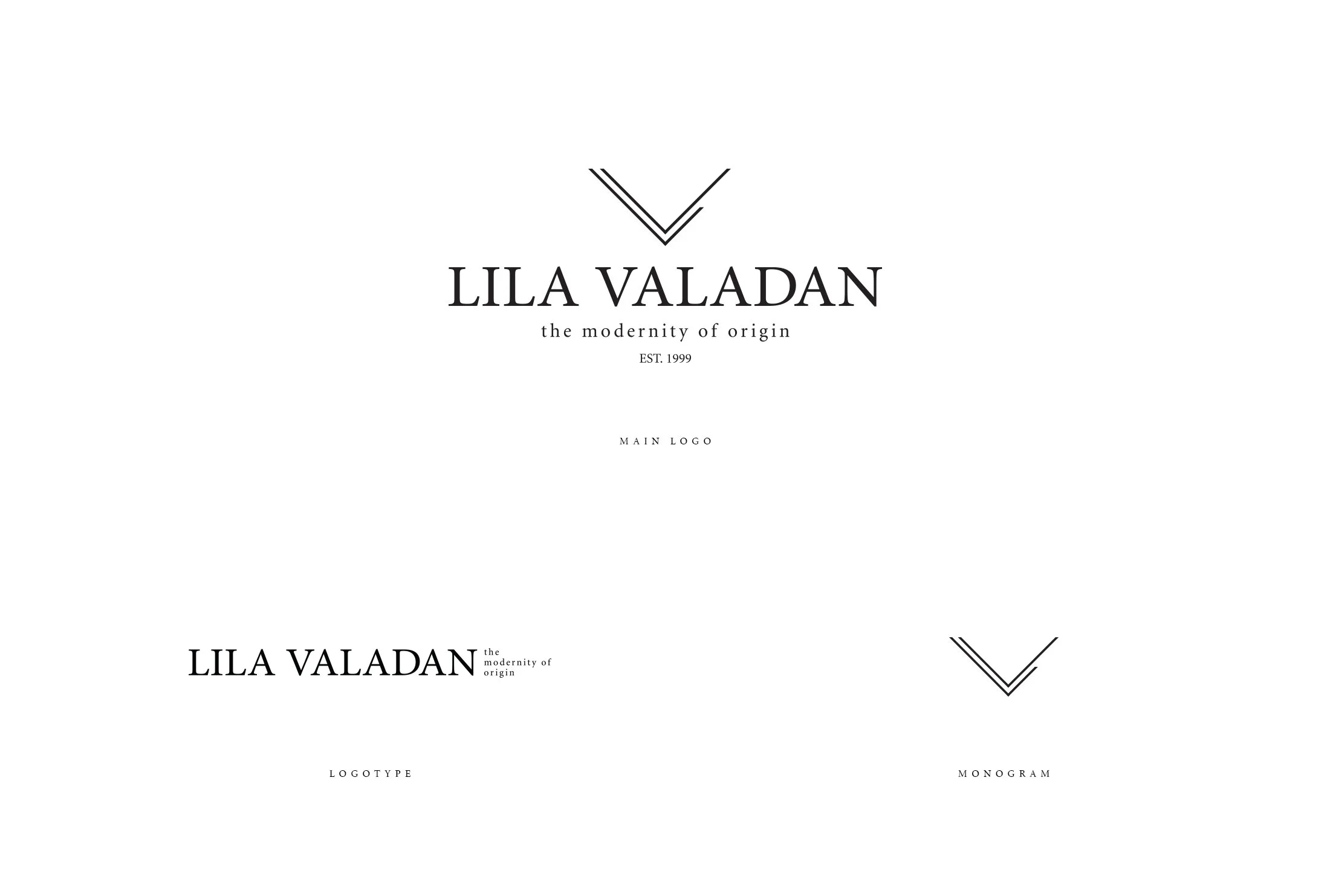 The corporate identity of Lila Valadan was inspired by the incredible minimalism which exists in ancient Persian rugs and crafts. The logo was not an exception. It follows the same ideology in addition to referring to the rectangular shape of a rug. The initials of the brand (L and V) are embodied as one corner of the rug which shape the monogram of the logo.