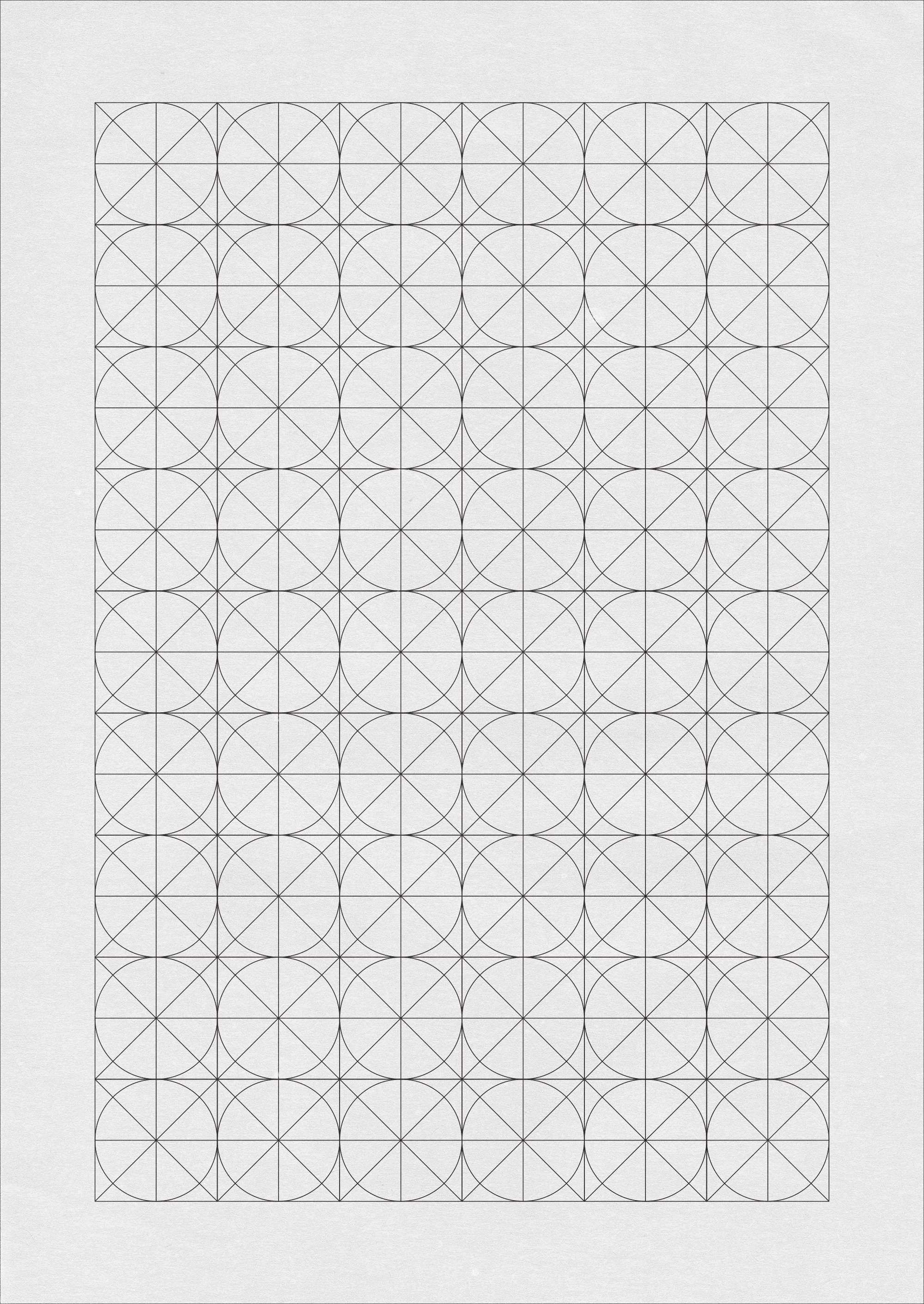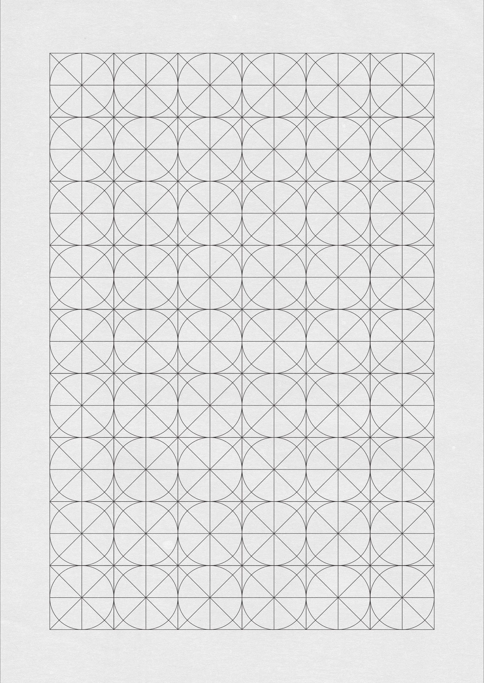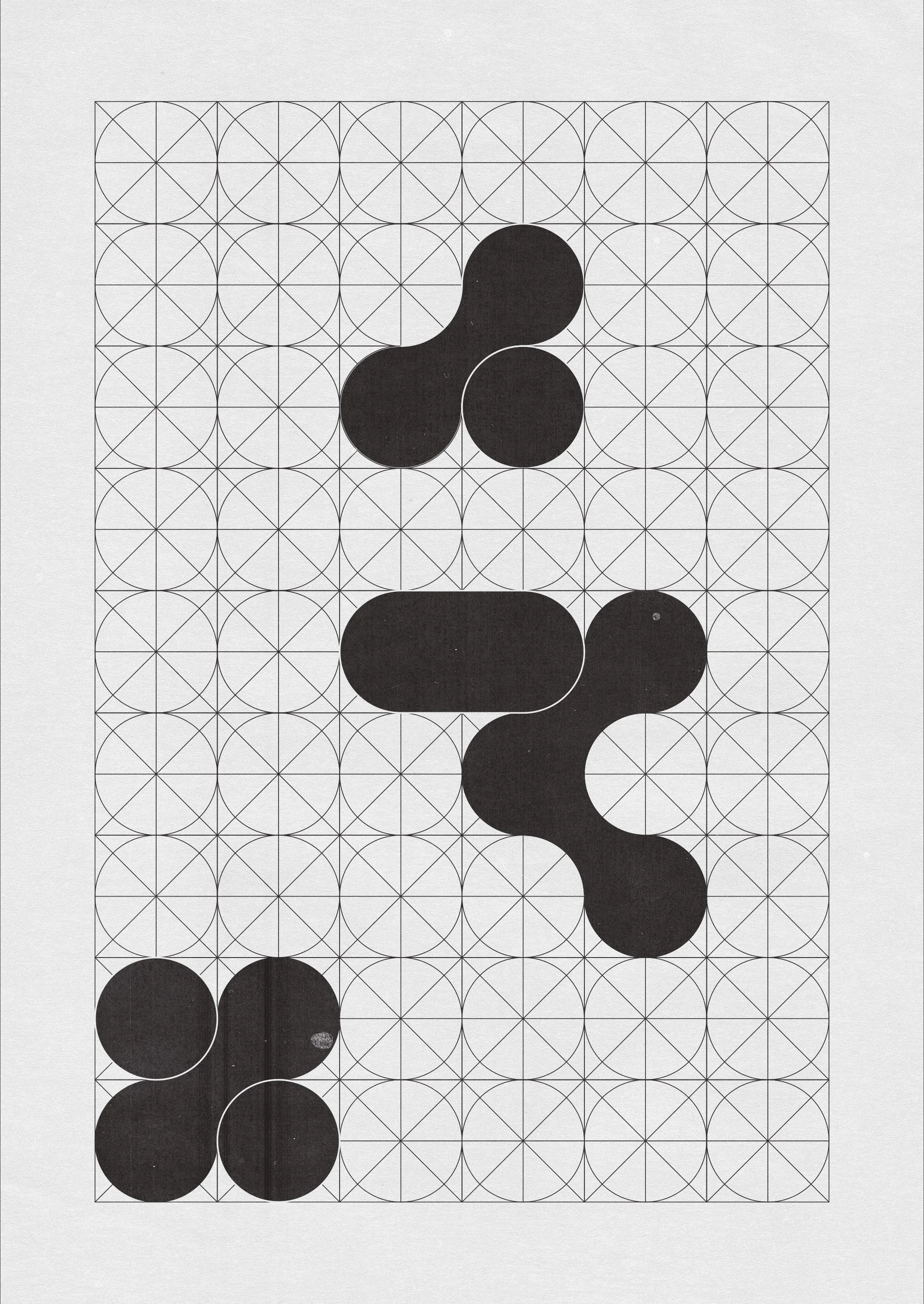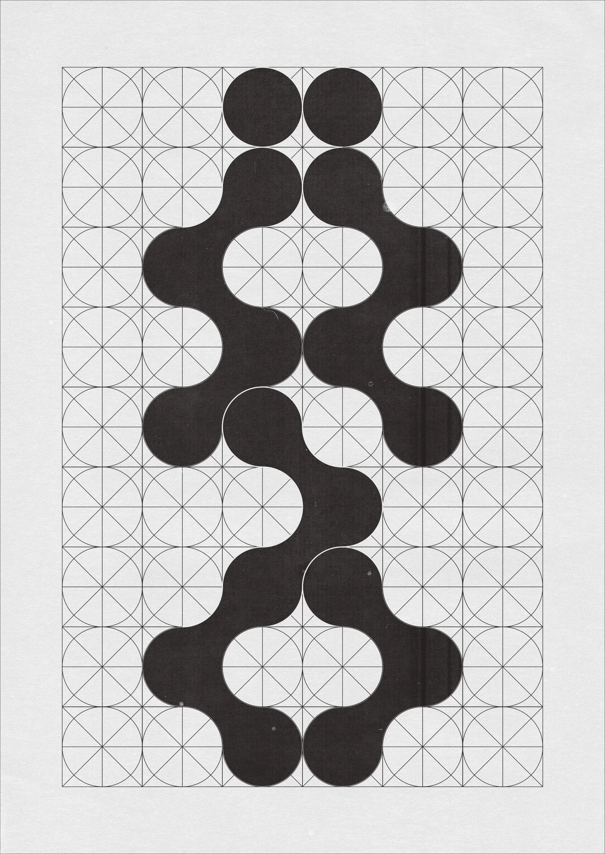 signature visual system: flowing circular forms within measurement grids, representing the balance between