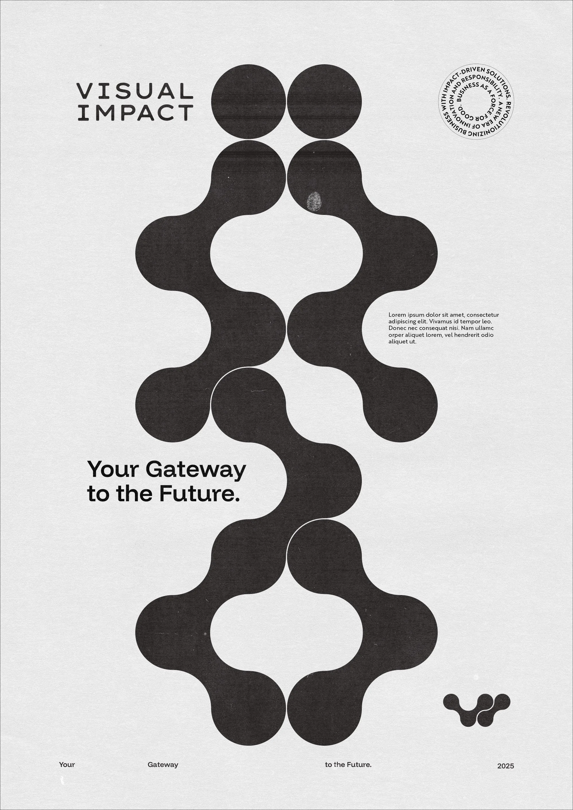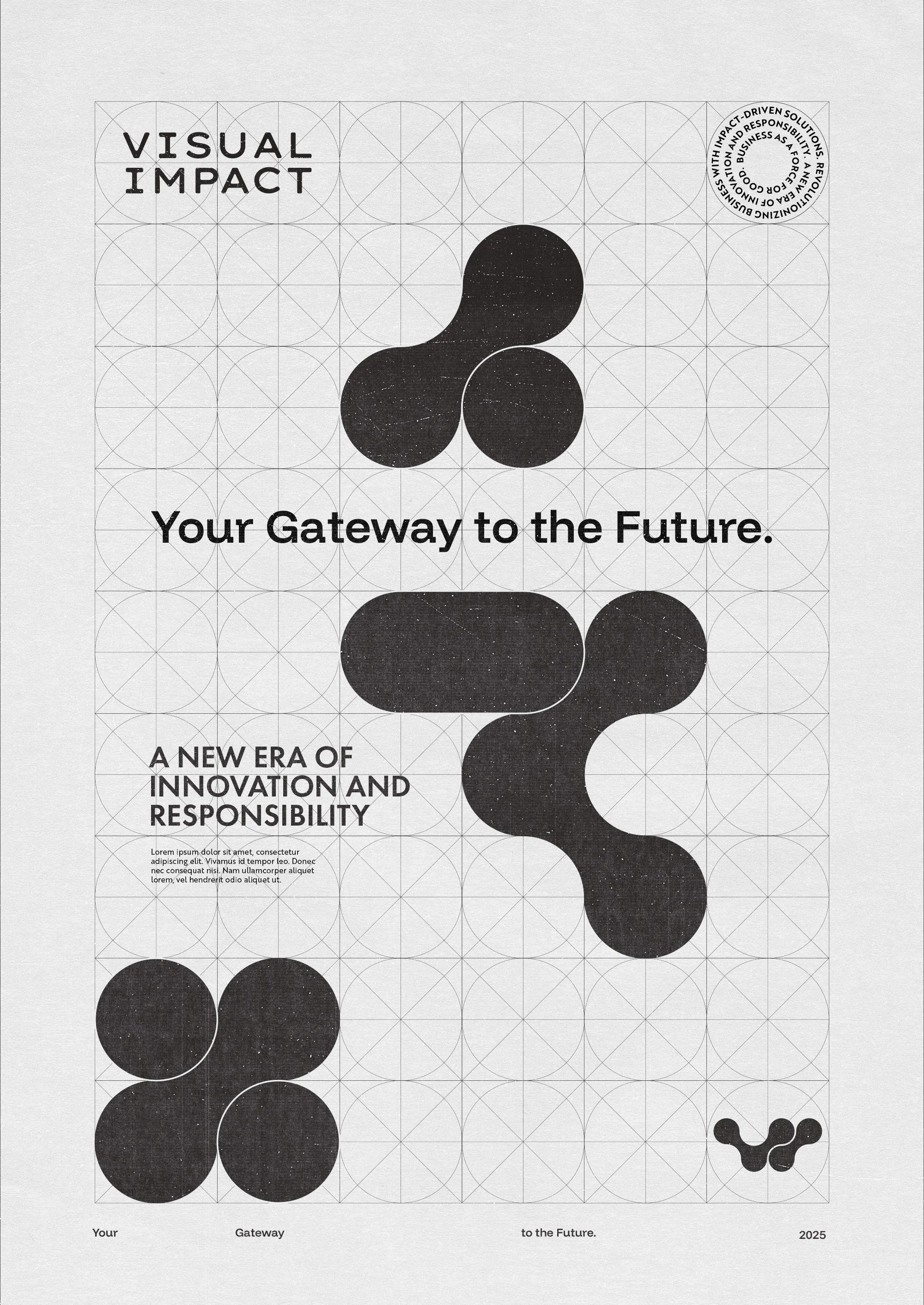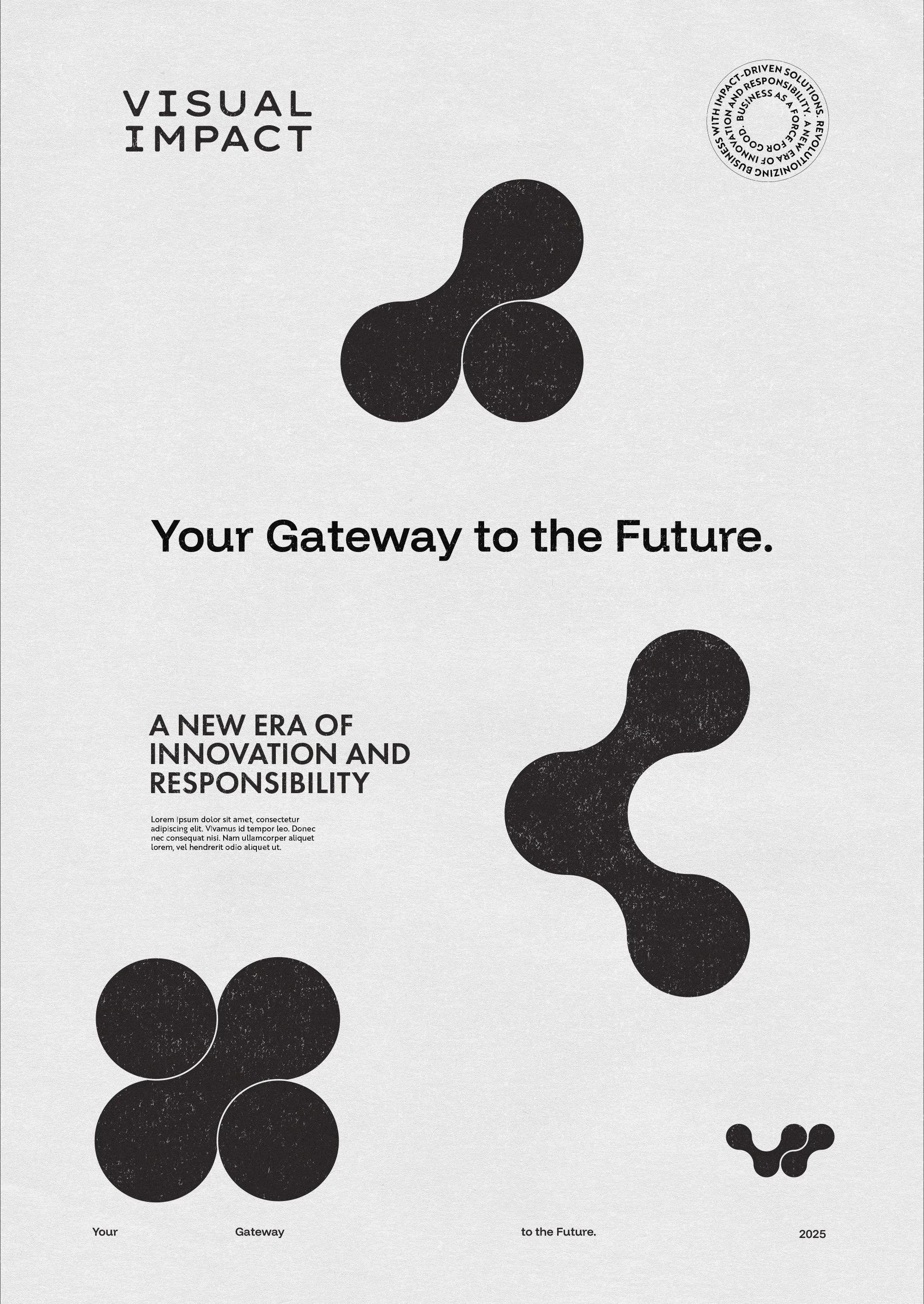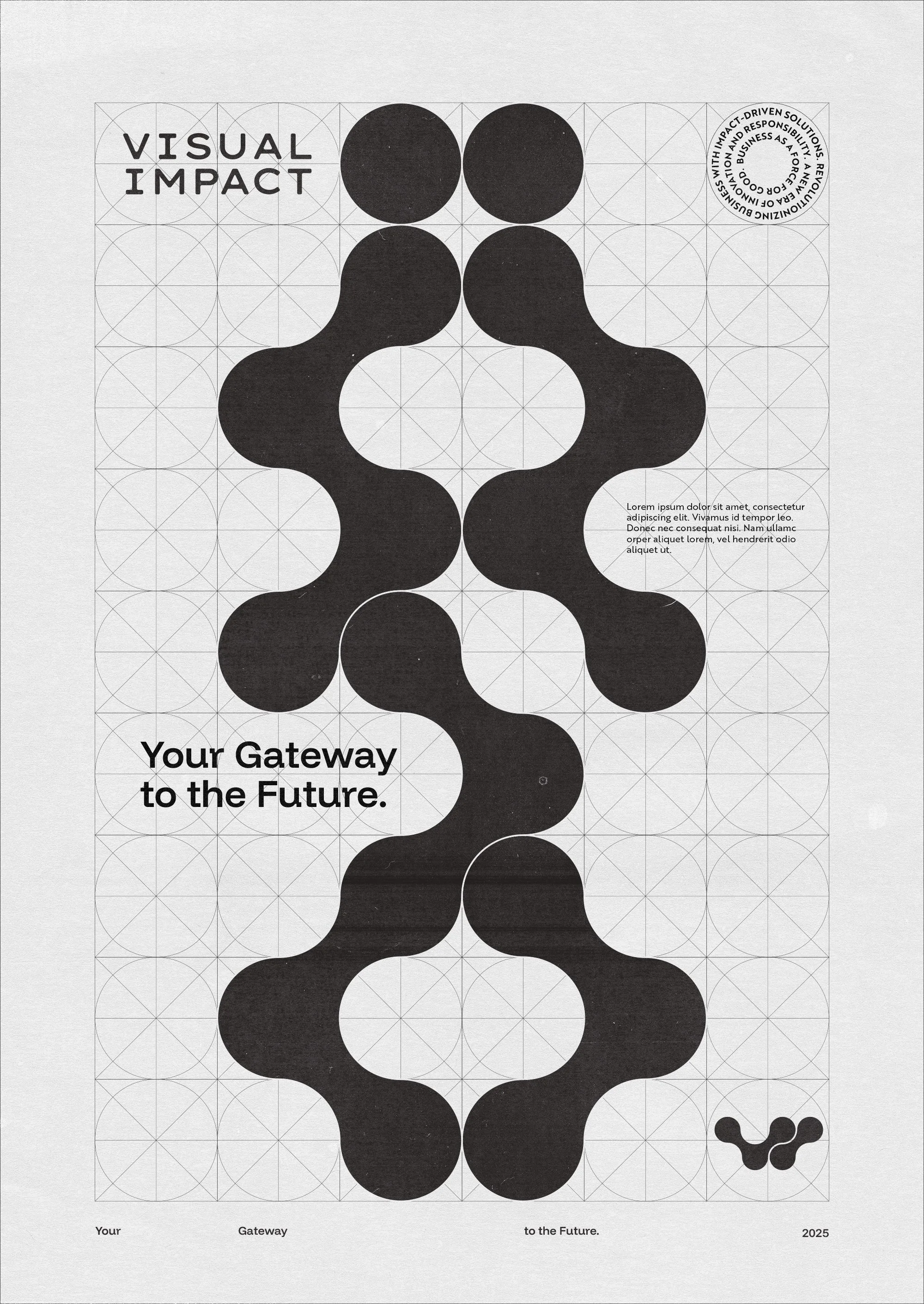 - The VI Monogram: Flowing letters merge through connecting circular forms, representing isolated data