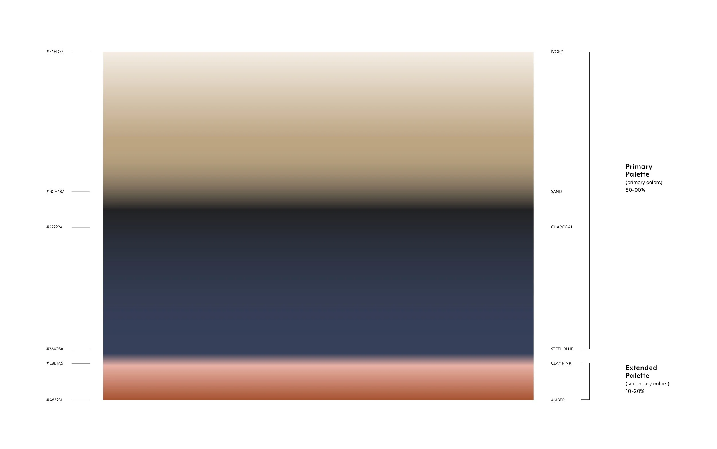 Each combination serves specific brand functions - premium combinations (charcoal/ivory) for high-impact applications, balanced combinations (steel blue/ivory) for primary communications, and accent combinations (amber/charcoal) for special storytelling elements.